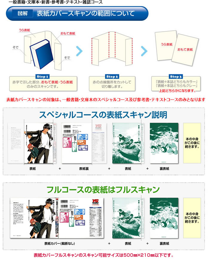 ■表紙カバースキャンなし 165円/1冊 ■表紙カバースキャン有(背表紙、袖はスキャンしません) 220円/1冊 |
